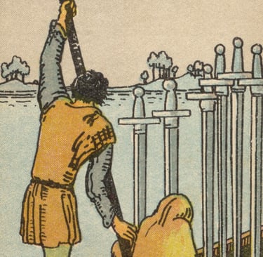 Ao tocar o barco, o Louco sentiu o alívio de deixar para trás o peso das preocupações e dos pensamentos conflituosos que o Cinco de Espadas havia lhe trazido. Ele entendeu que o Seis de Espadas era sobre abandonar os conflitos e seguir em direção a novas possibilidades, mesmo que a jornada ainda estivesse apenas começando. Era um símbolo de esperança e de clareza mental emergente.