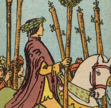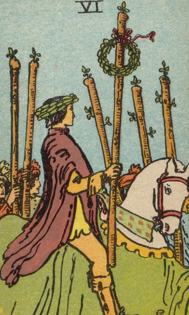 Ao tocar o estandarte do vitorioso, o Louco foi inundado por uma sensação de conquista. Ele percebeu que o Seis de Paus falava sobre o reconhecimento justo após um período de luta. Era o símbolo de ser visto, apreciado e aclamado por aquilo que se realizou. A vitória não era apenas interna, mas também celebrada por aqueles ao redor.