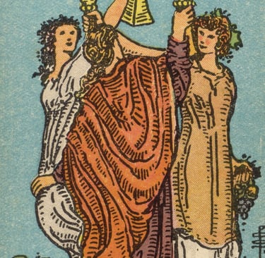 Depois de entender a dualidade dos Dois e como equilibrar as forças opostas que regem o universo, o Louco percebeu que sua jornada o conduzia a uma nova fase: a do Três. Se o Dois representava o equilíbrio entre as polaridades, o Três era o próximo passo, a expansão, o crescimento e a criação a partir da união dessas forças. Era o número do movimento e da manifestação, onde o potencial dos Áses e o equilíbrio dos Dois se transformavam em algo tangível e concreto.