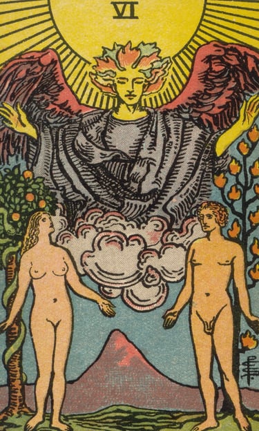 O Louco parou e observou. Os Enamorados eram mais do que um casal — eles representavam a união, o desejo, a escolha e a dualidade que cada ser humano enfrenta em algum ponto da vida. Havia uma tensão entre o desejo carnal e o amor espiritual, entre a individualidade e a fusão com o outro. E, ao mesmo tempo, havia um magnetismo, uma força que os atraía inexoravelmente, como se algo divino estivesse guiando aquele encontro.