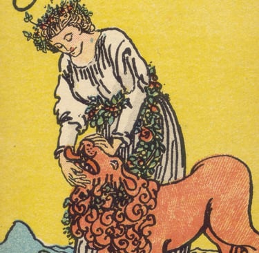 O Louco observou, fascinado. A Força não era o que ele esperava. Ele havia imaginado um guerreiro, um ser com músculos e armas, alguém que dominasse o mundo pela força física. Mas diante dele estava algo muito mais poderoso: uma mulher que, com sua gentileza e confiança interior, controlava o que parecia indomável. Ela não forçava o leão a nada; em vez disso, sua presença serena parecia inspirar o respeito e a calma no coração da fera.